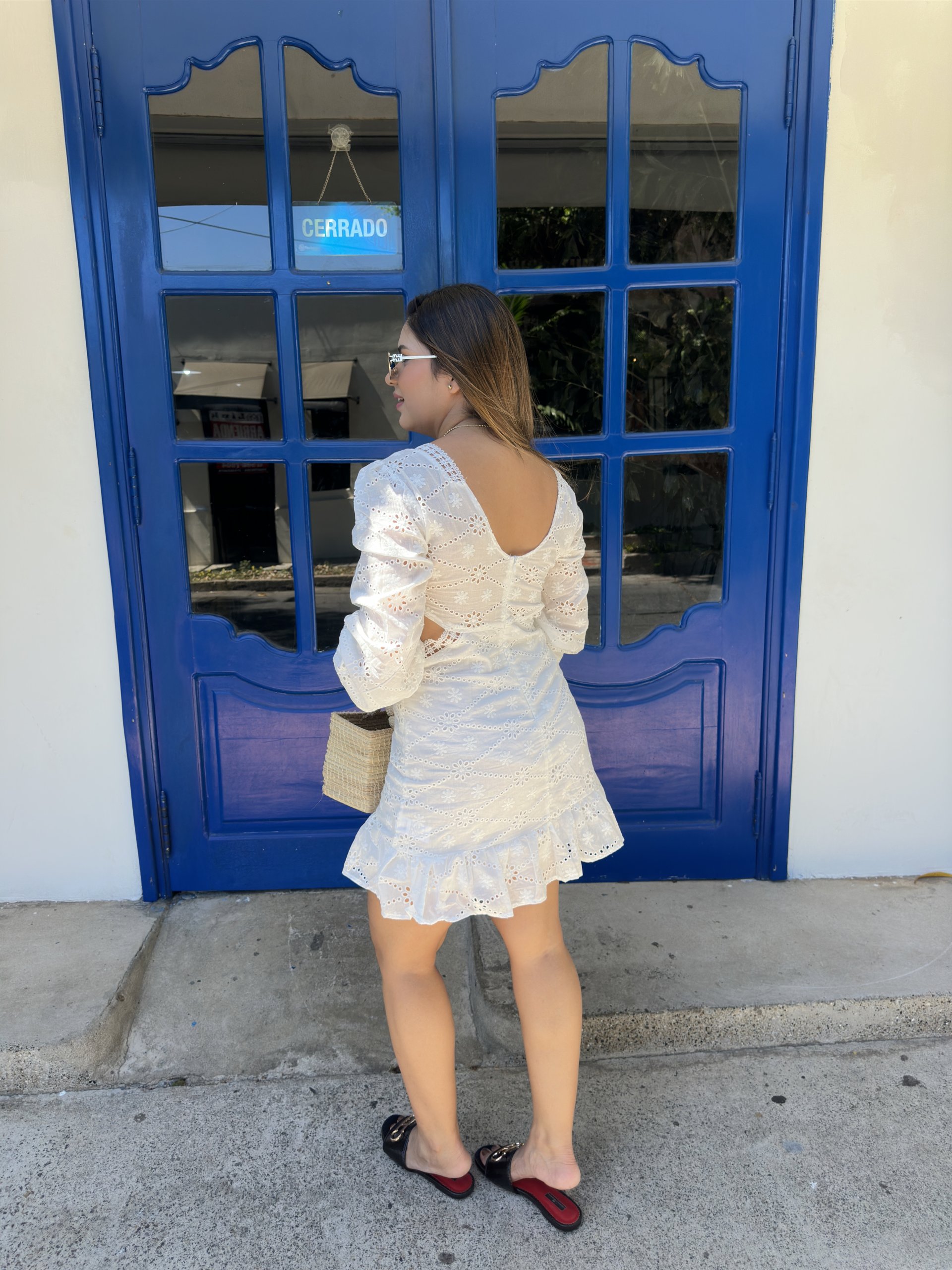 Un encanto atemporal. Nuestro Perla es un vestido corto en ojalillo blanco, con mangas largas que aportan un toque romántico y femenino. Su diseño delicado y fresco es perfecto para días soleados, brunchs, vacaciones o cualquier ocasión donde quieras lucir elegante pero relajada. Combínalo con tus accesorios favoritos y deja que el encanto del ojalillo hable por ti.
